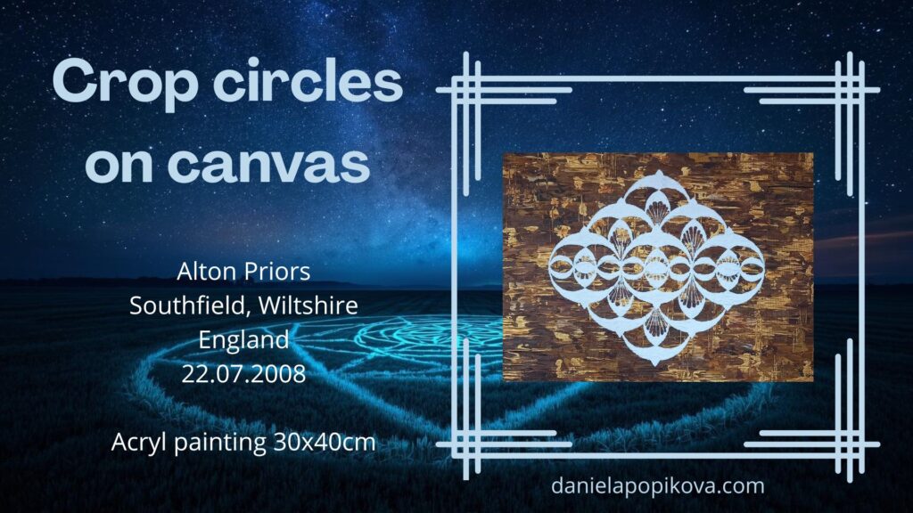 Symbolizmus mě fascinuje už léta, ale že jednoho dne budu tvořit obrazy s energetickými kruhy v obilí, to mě překvapilo. Zajímavé na tom je, že u rýsování mi „odněkud“ chodí KNOW-HOW a některé složité obrazce, co mě intuitivně přitáhnou malovat, mám na papíru hotové za 15-20 minut. (Obraz trvá samozřejmě déle.) Každá formace, která se dostane na můj obraz má určitou frekvenci čísel, kódu, třeba 3-6-9 nebo energie čísla 8, či zlatý řez a jiné.